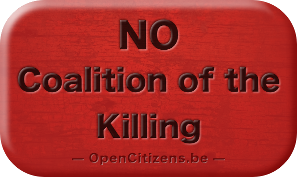 Wij burgers van België, zijn het niet eens met uw oorlogsprovocaties en bewapening.